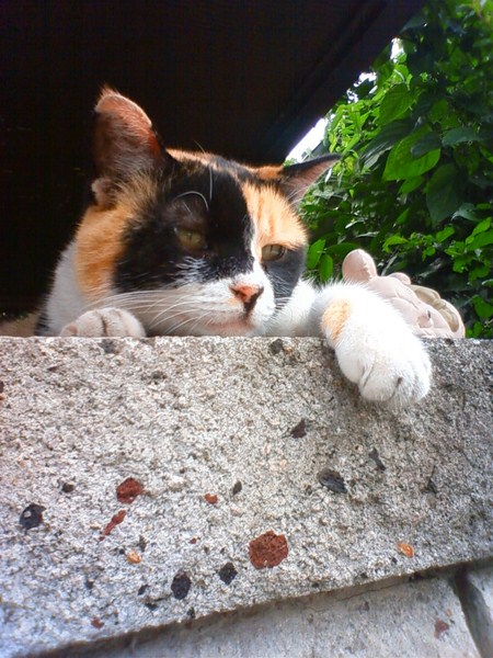 半年近く前までは買い物や散歩で出かける路地の、大体はいつも決まったあたりで日向ぼっこしていて、こちらが手を差し出して呼ぶと屋根の上や門柱からもわざわざ降りて近寄ってくる人なつこい三毛猫の子猫で、可愛いから、煮干しをビニール袋に入れて、わざわざタマちゃんのいる路地に行ったのであった。